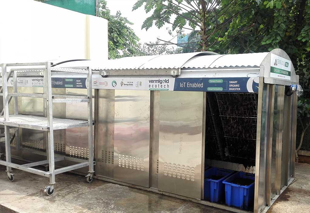 The system overcomes the drawback of traditional vermiculture/composting systems and provides a hassle-free operational experience for end-users. The project can be implemented anywhere where organic waste is generated. It has been successfully implemented in open areas as well as underground basements.